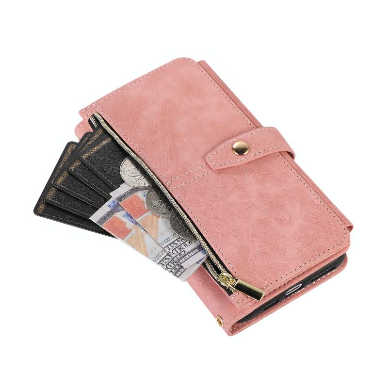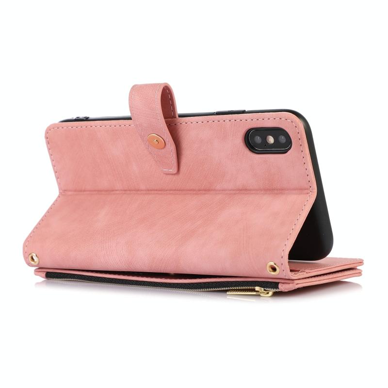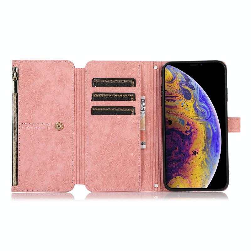 For iPhone X / XS Dream 9-Card Wallet Zipper Bag Leather Phone Case(Pink)