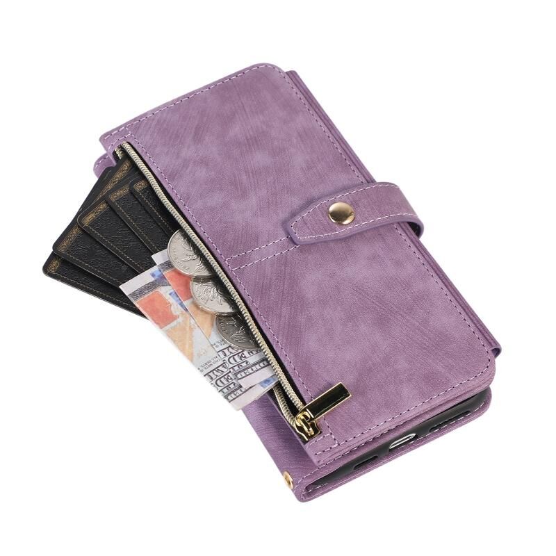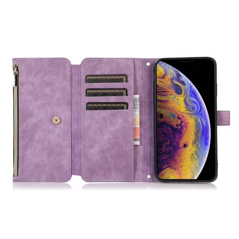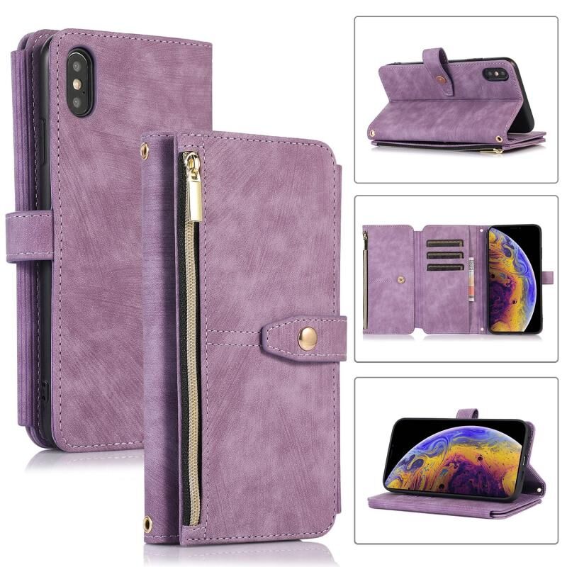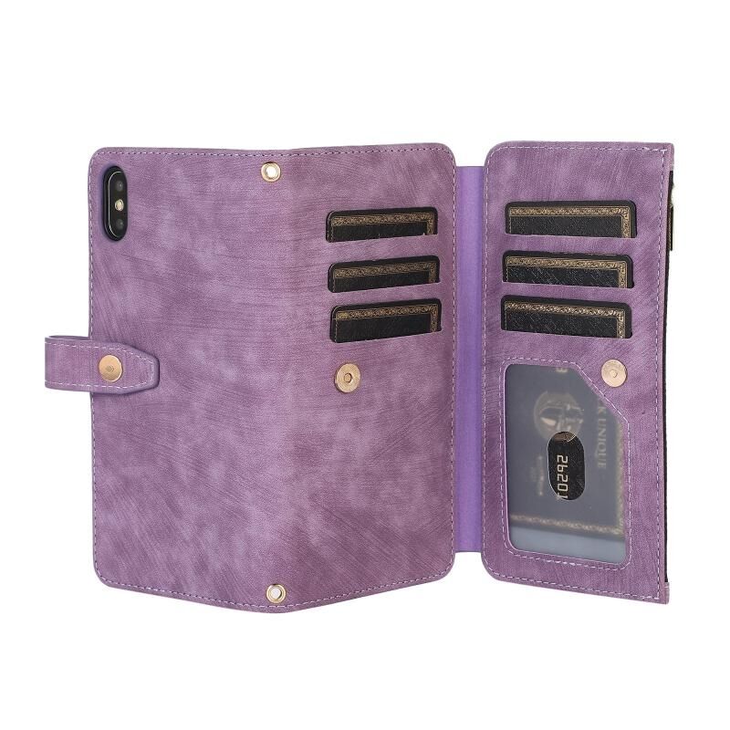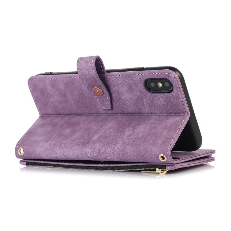 For iPhone X / XS Dream 9-Card Wallet Zipper Bag Leather Phone Case(Purple)