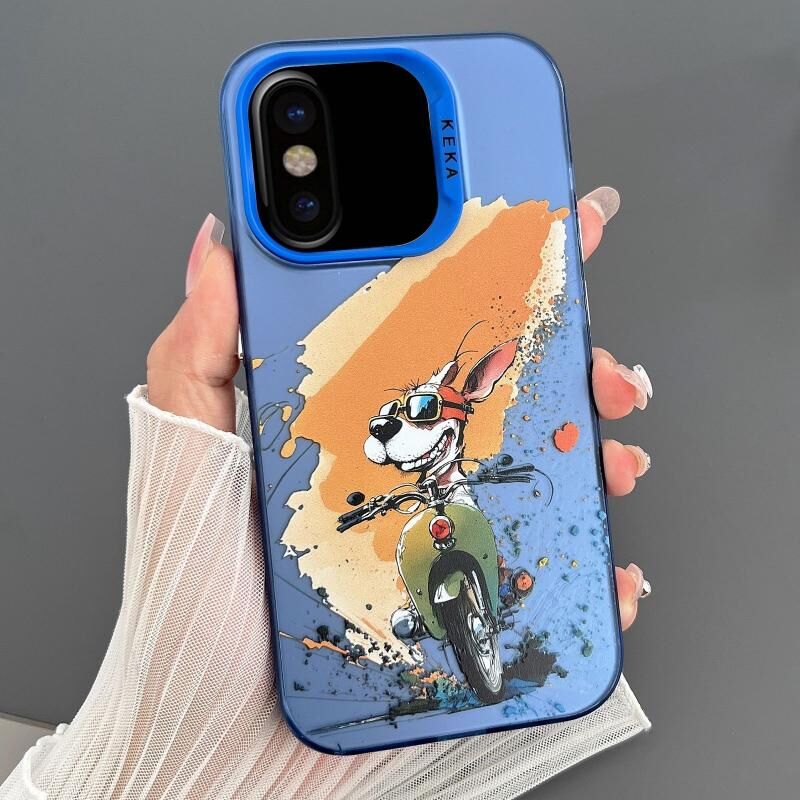 For iPhone X / XS Dual-sided IMD Animal Graffiti TPU + PC Phone Case(Electromobile Dog)