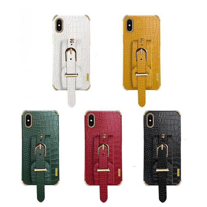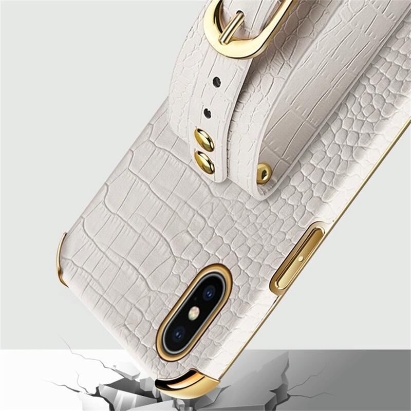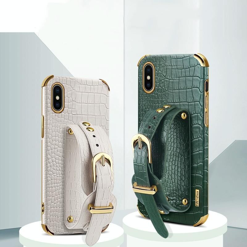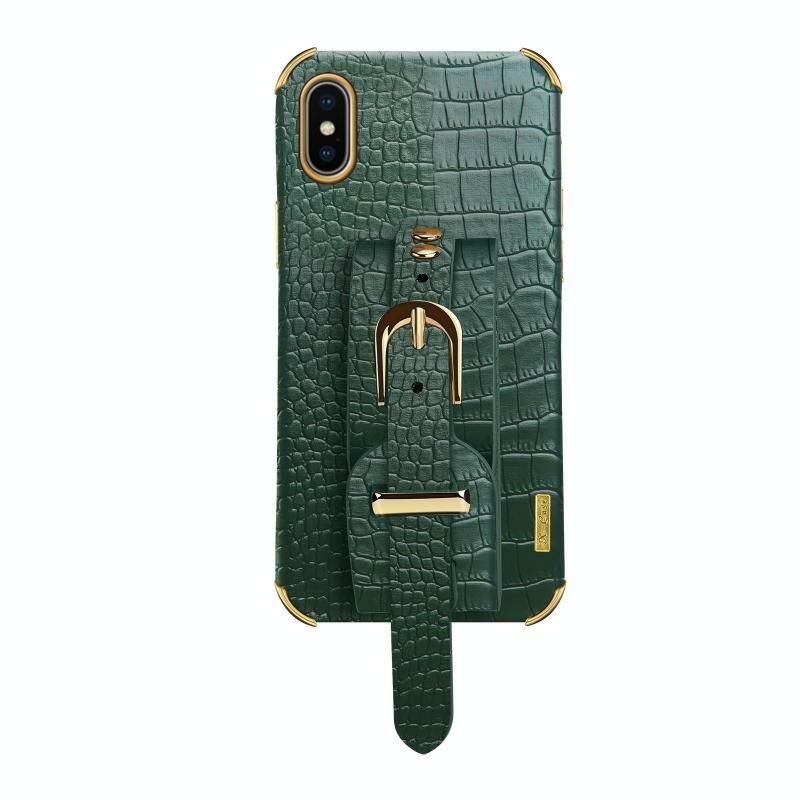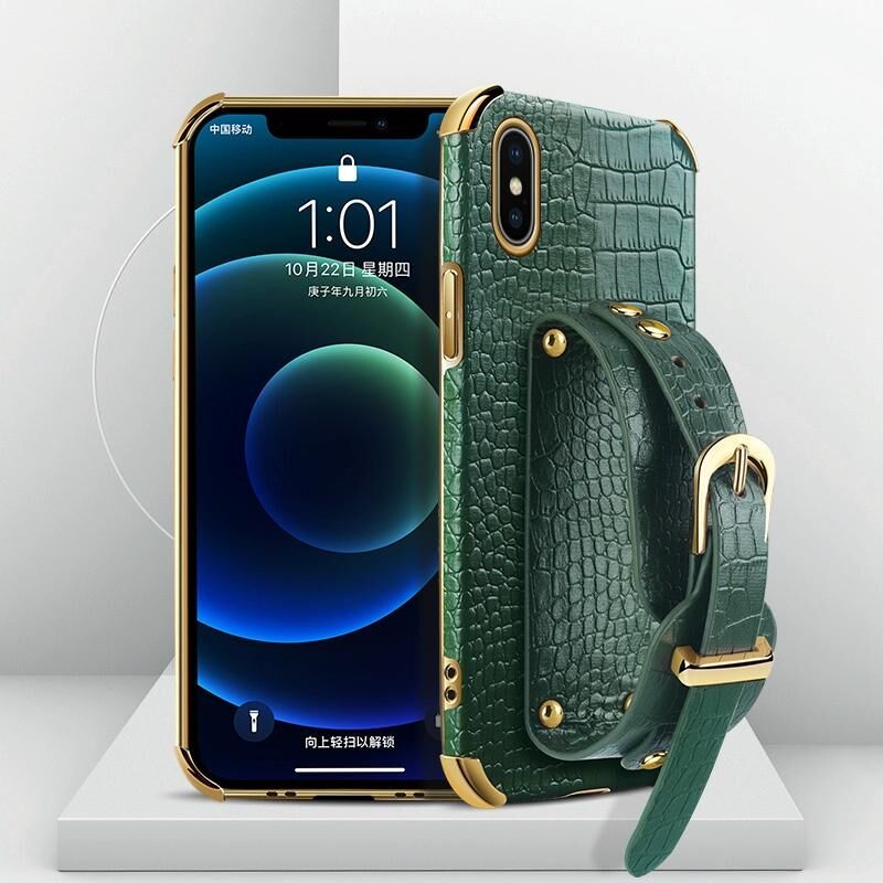 For iPhone X / XS Electroplated TPU Crocodile Pattern Leather Case with Wrist Strap(Green)