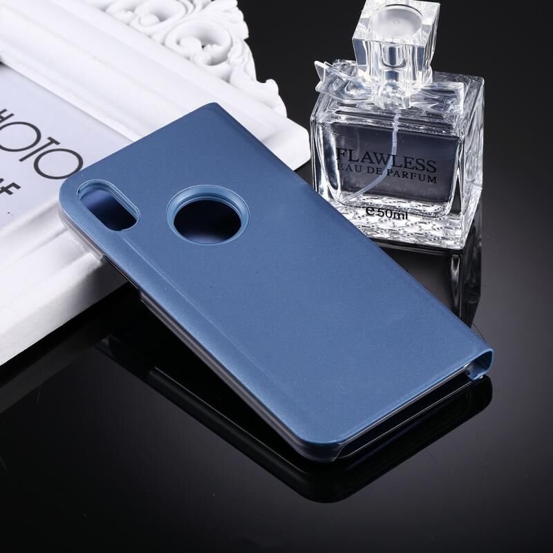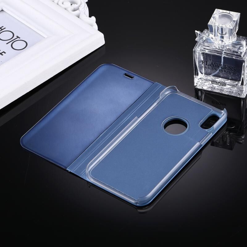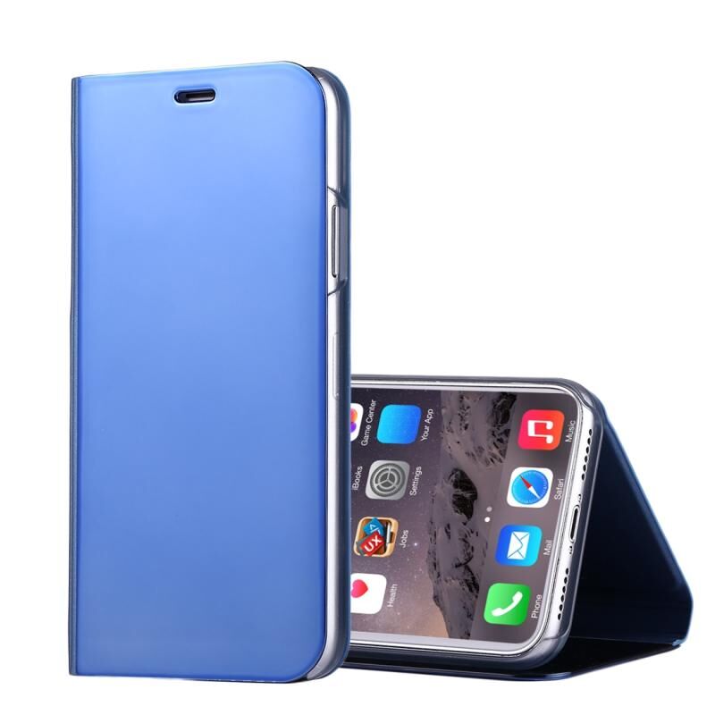 Θήκη δέρματος οριζόντιας αναδίπλωσης με καθρέφτη επιμετάλλωσης για iPhone X / XS με βάση (Χρυσό)