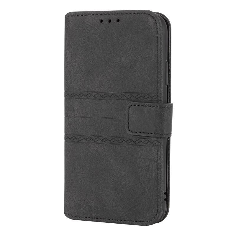 Θήκη δέρματος οριζόντιας αναδίπλωσης για iPhone X / XS με ανάγλυφο ριγέ μαγνητικό κούμπωμα PU + TPU, με βάση & υποδοχή κάρτας & πορτοφόλι & κορνίζα φωτογραφιών & λουρί (Μαύρο)