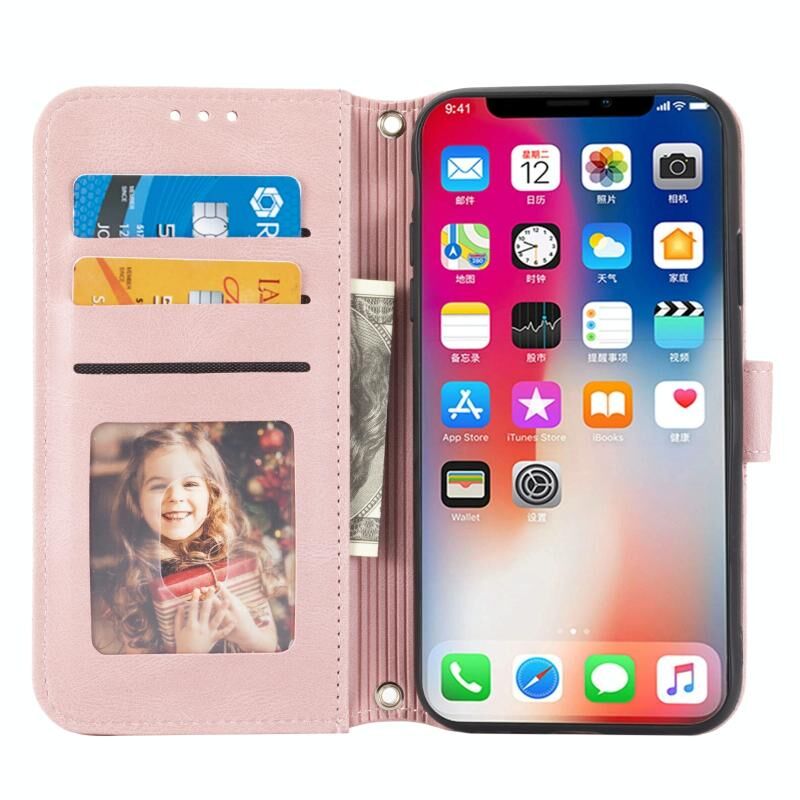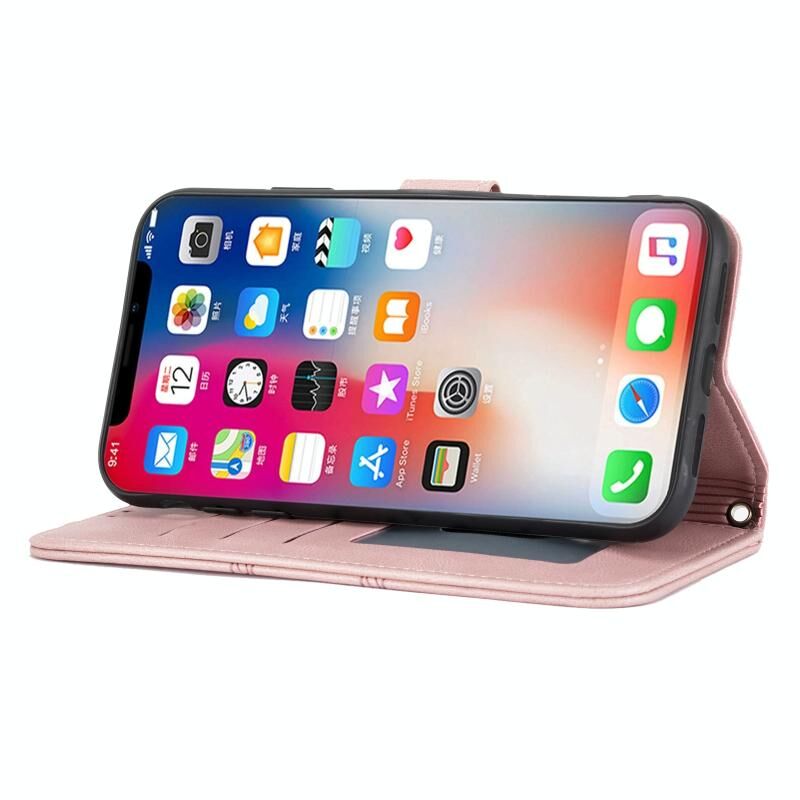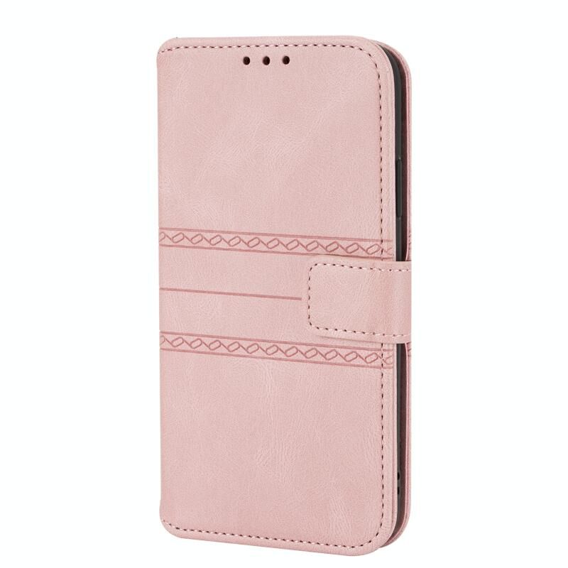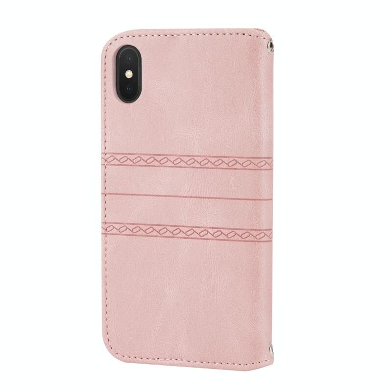 For iPhone X / XS Embossed Striped Magnetic Buckle PU + TPU Horizontal Flip Leather Case with Holder & Card Slot & Wallet & Photo Frame & Sling(Pink)