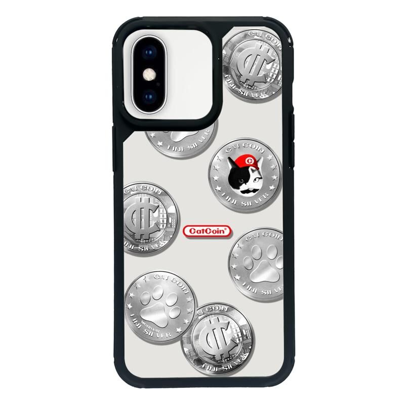 For iPhone X / XS Exclusive Design Style PC Full Coverage Pattern Phone Case(Silver Coin Cat)