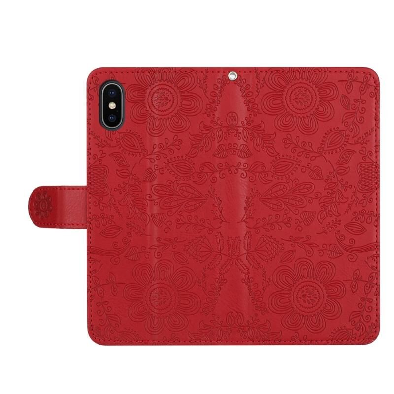 Θήκη τηλεφώνου από δέρμα με ανάγλυφο floral σχέδιο για iPhone X / XS (Κόκκινο)