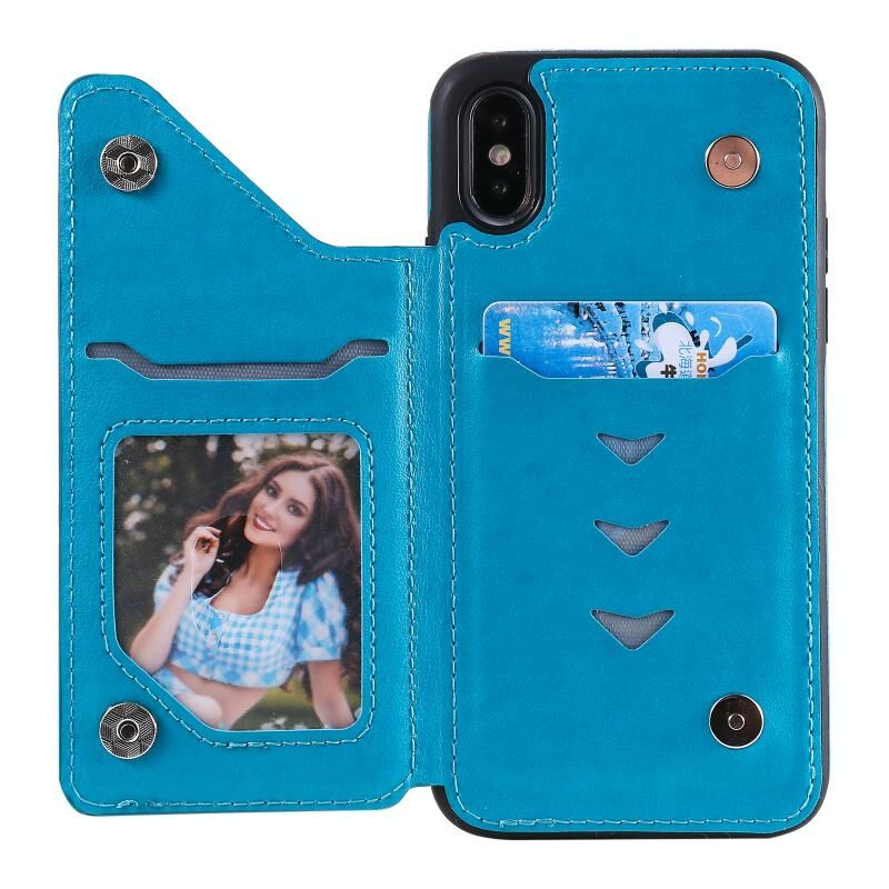 Θήκη προστασίας για iPhone X / XS με ανάγλυφο σχέδιο λουλουδιών, αντικραδασμική, με βάση στήριξης & θήκες για κάρτες & κορνίζα φωτογραφιών (Μπλε)