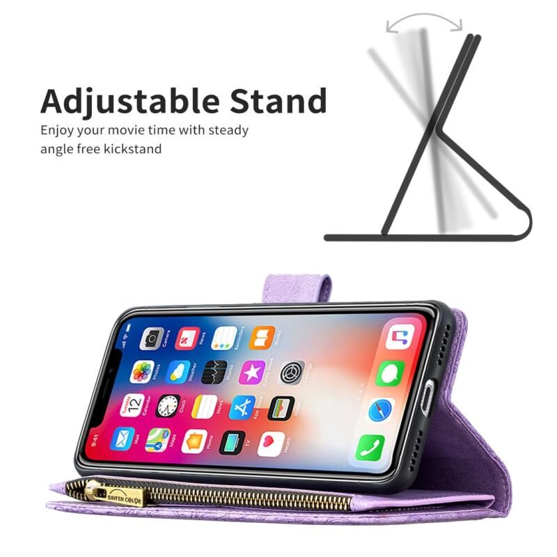 For iPhone X / XS Flying Butterfly Embossing Pattern Zipper Horizontal Flip Leather Case with Holder & Card Slots & Wallet(Purple)