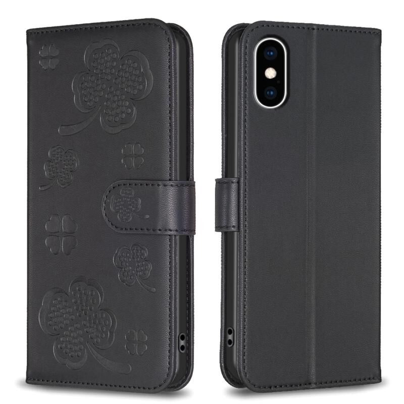 Θήκη τηλεφώνου από δέρμα με ανάγλυφο τετράφυλλο για iPhone X / XS (Κόκκινο Ρόδο)