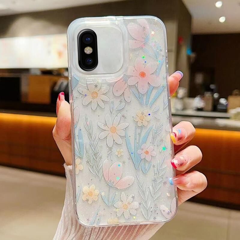 Θήκη τηλεφώνου για iPhone X / XS, φρέσκο μικρό λουλουδάτο epoxy TPU (D03 Floral Pink)
