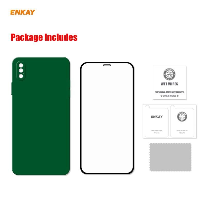 Για iPhone X / XS Καπέλο-Πρίγκιπας ENKAY ENK-PC0712 Υγρή Σιλικόνη Ευθεία Γωνία Αντικραδασμική Προστατευτική Θήκη + 0.26mm 9H 2.5D Πλήρης Κόλλα Πλήρης Οθόνη Επισκευασμένο Γυαλί (Σκούρο Πράσινο) (ENKAY)