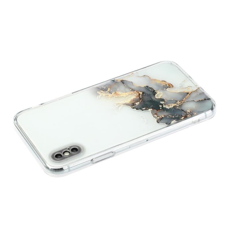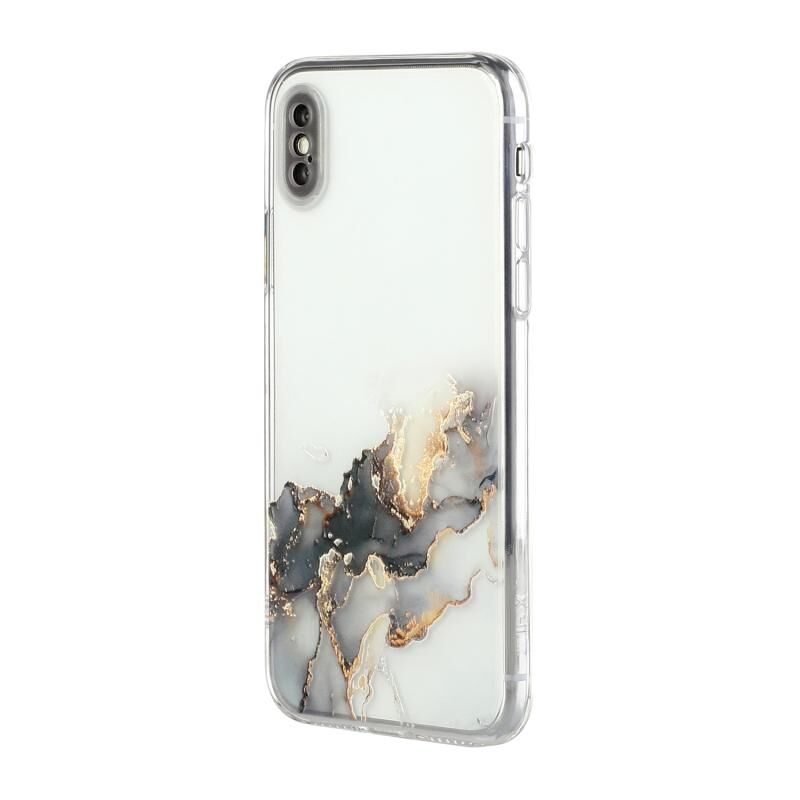 Θήκη προστασίας TPU με κοίλο σχέδιο μαρμάρου και ευθείες άκρες για iPhone X / XS (Κίτρινο Μπλε)