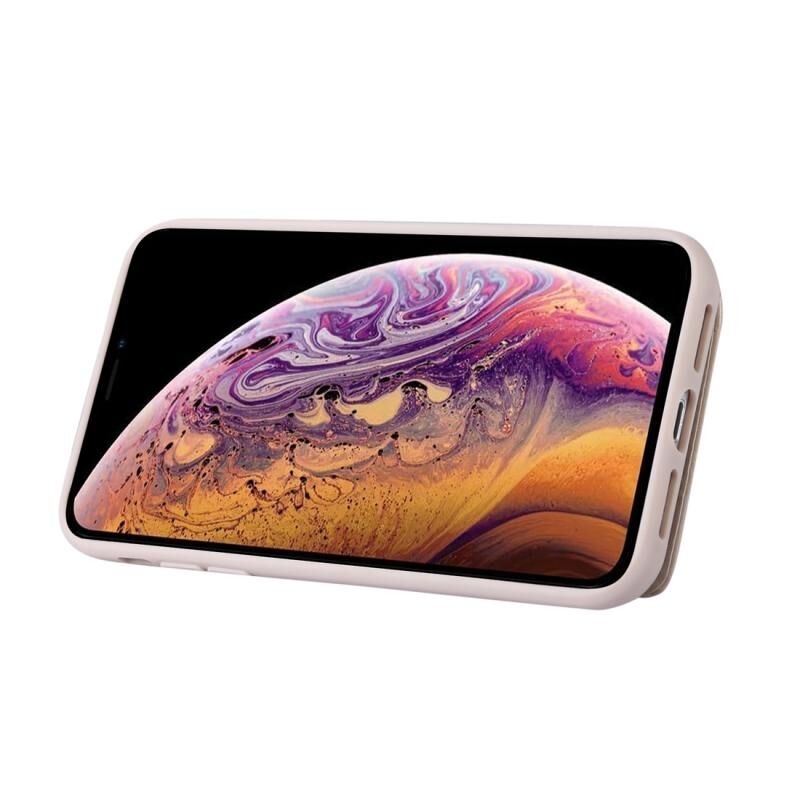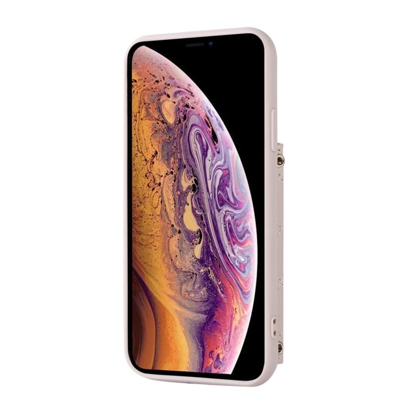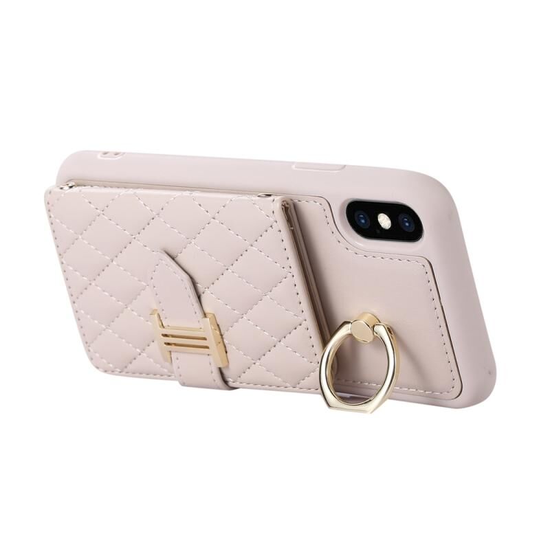 For iPhone X / XS Horizontal Card Bag Ring Holder Phone Case with Dual Lanyard(Beige)
