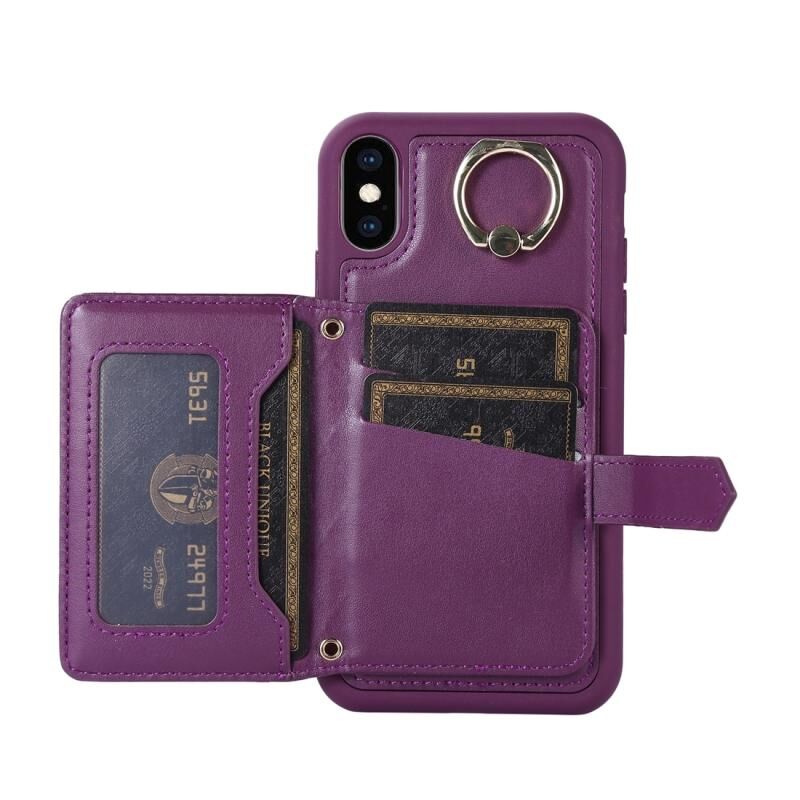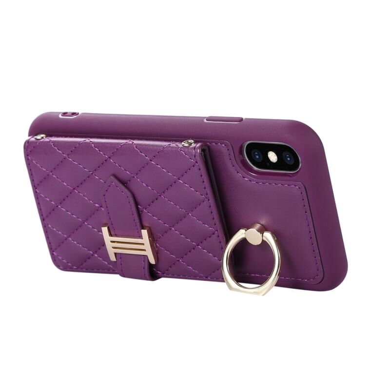 For iPhone X / XS Horizontal Card Bag Ring Holder Phone Case with Dual Lanyard(Purple)