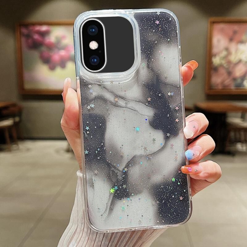 Θήκη τηλεφώνου TPU με γκλίτερ και μουτζούρες μελανιού για iPhone X / XS (Μωβ)