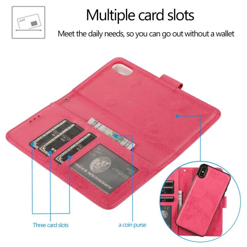 4. Πολυλειτουργικός σχεδιασμός, θήκες για κάρτες, πορτοφόλι, βάση στήριξης, αποσπώμενη μαγνητική προστατευτική πίσω θήκη.