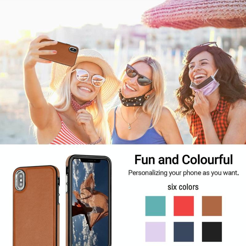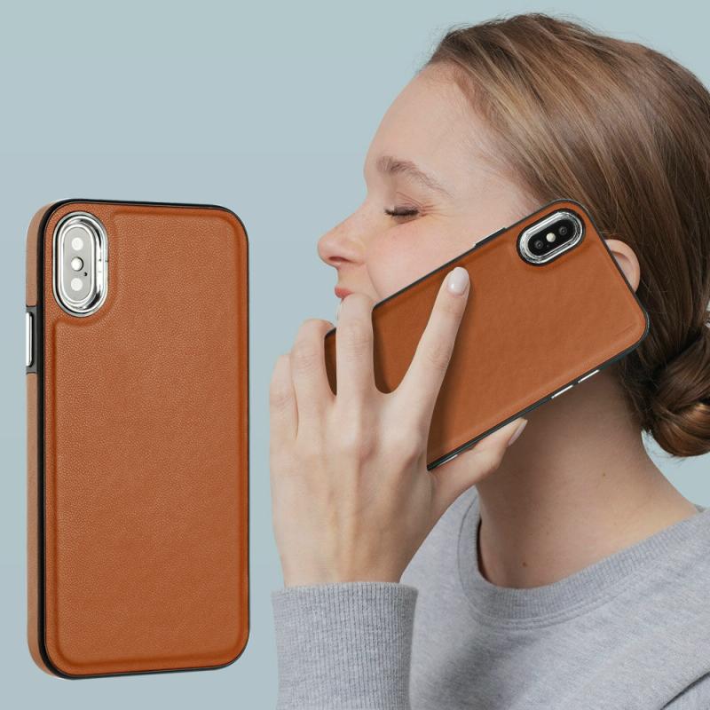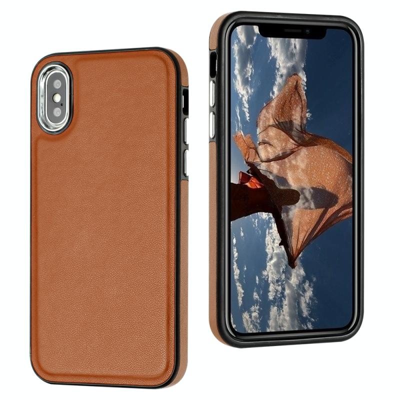 Θήκη τηλεφώνου πλήρους κάλυψης με υφή δέρματος για iPhone X / XS (Καφέ)