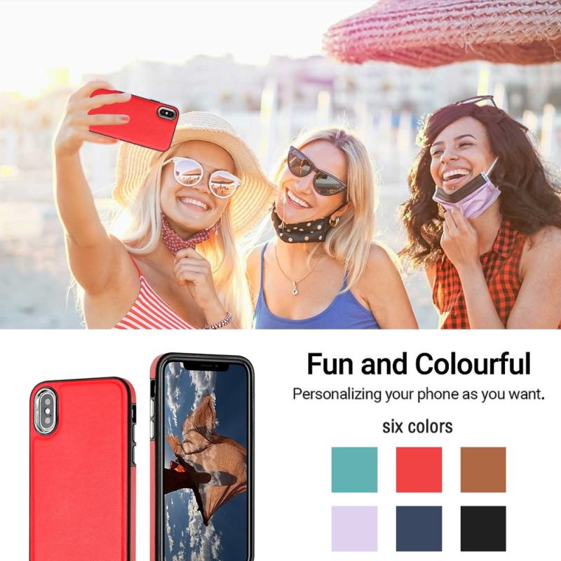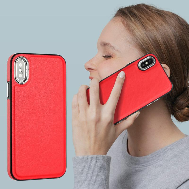 Θήκη τηλεφώνου πλήρους κάλυψης με υφή δέρματος για iPhone X / XS (Κόκκινο)