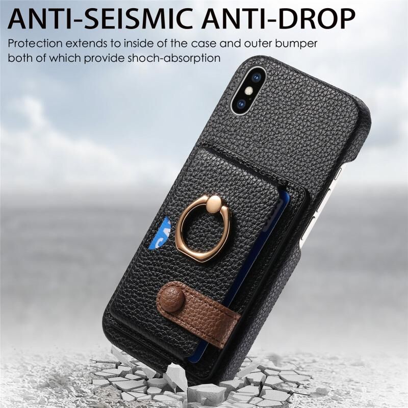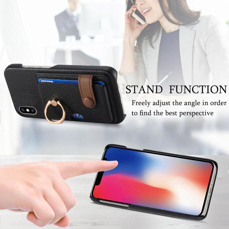 Θήκη τηλεφώνου για iPhone X / XS από δέρμα Litchi με λεπτή άκρη λαδιού και βάση για κάρτες (Μαύρο)