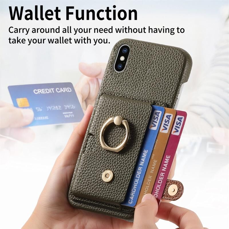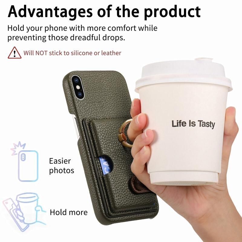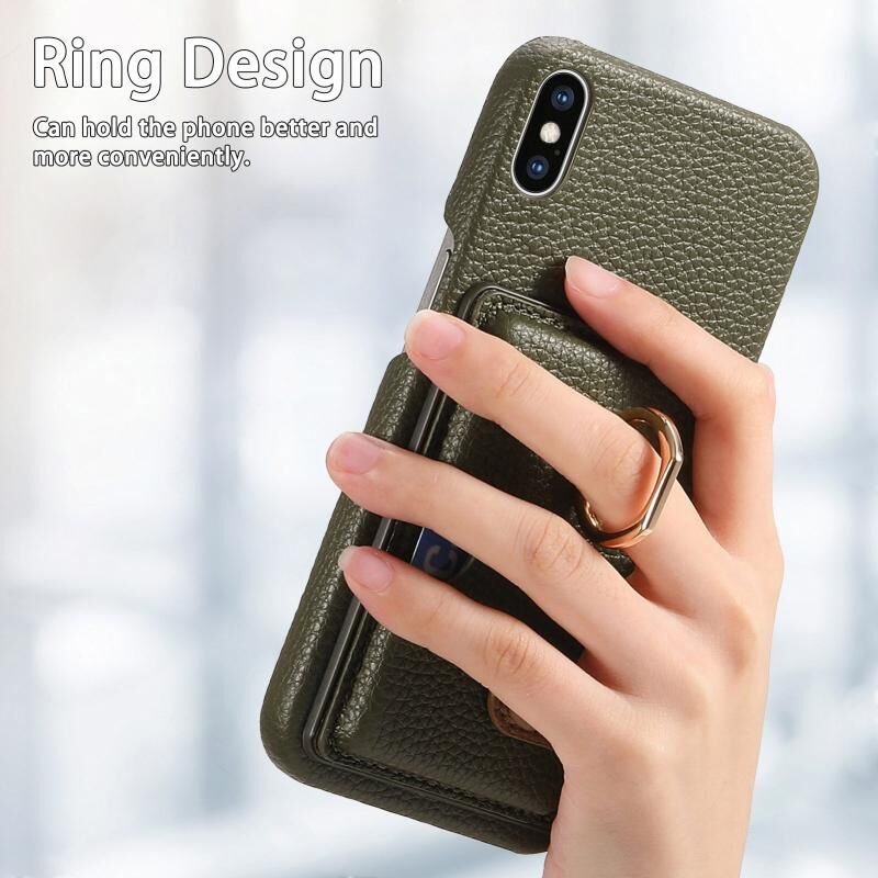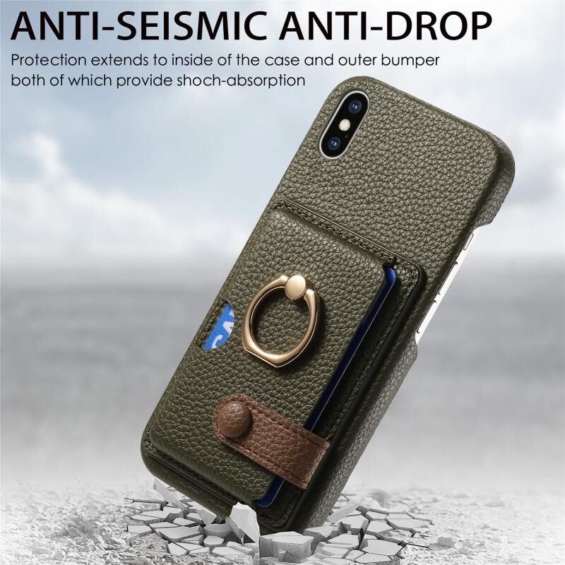 Θήκη τηλεφώνου για iPhone X / XS από δέρμα Litchi με λεπτή άκρη λαδιού και θήκη κάρτας στην πλάτη (Πράσινο Τσάι)