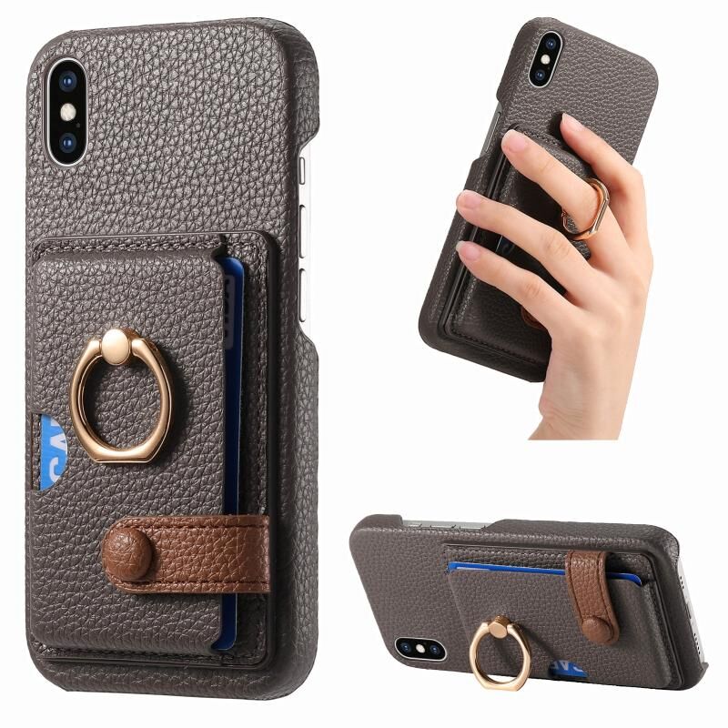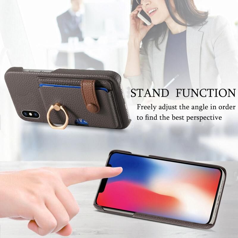 Θήκη τηλεφώνου για iPhone X / XS από δέρμα Litchi με λεπτή άκρη λαδιού και θήκη κάρτας στην πλάτη (Πράσινο Τσάι)