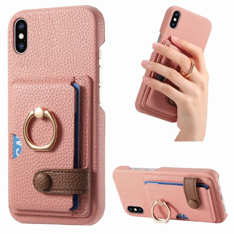 Θήκη τηλεφώνου για iPhone X / XS από δέρμα Litchi με λεπτή άκρη λαδιού και θήκη κάρτας στην πλάτη (Πράσινο Τσάι)