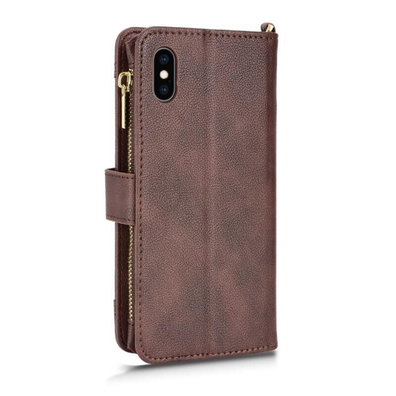 Θήκη τηλεφώνου από δέρμα με υφή λύτσι και φερμουάρ για iPhone X / XS (Ροζ)
