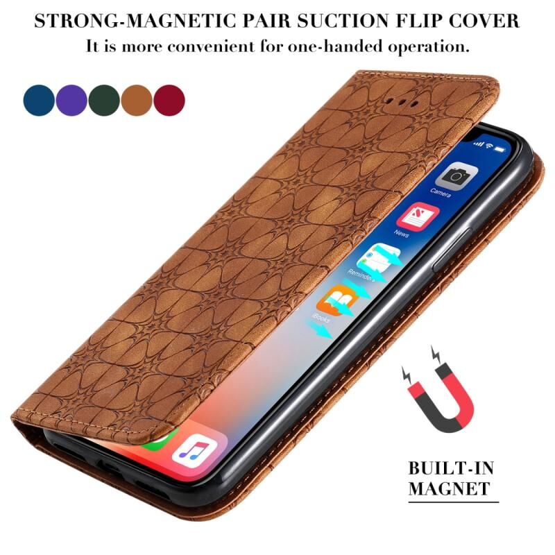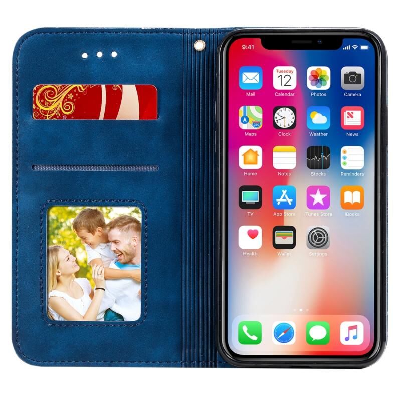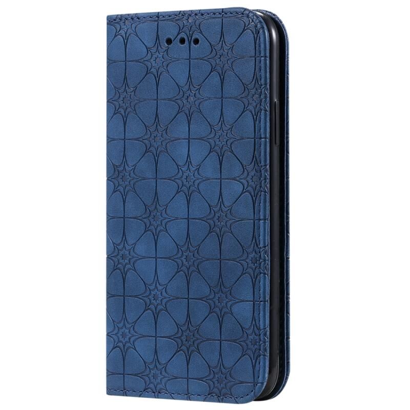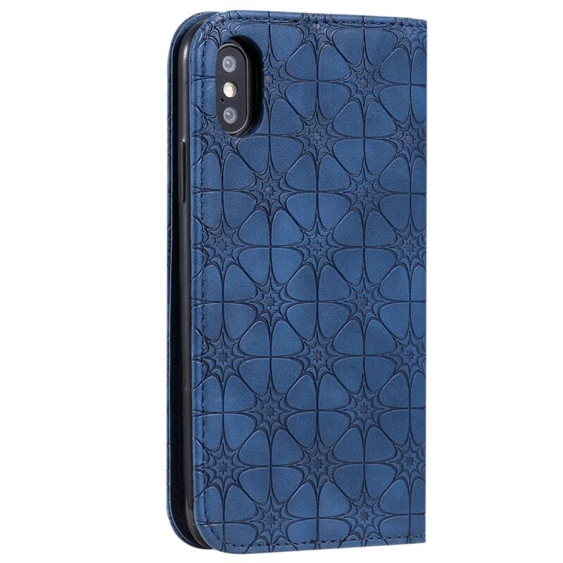 For iPhone X / XS Lucky Flowers Embossing Pattern Magnetic Horizontal Flip Leather Case with Holder & Card Slots(Dark Blue)