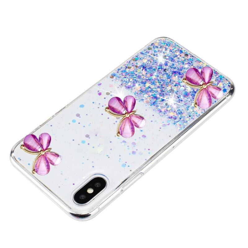 Θήκη τηλεφώνου TPU με λαμπερό αστέρι, γαλαξία και πεταλούδα για iPhone X / XS (Ροζ)