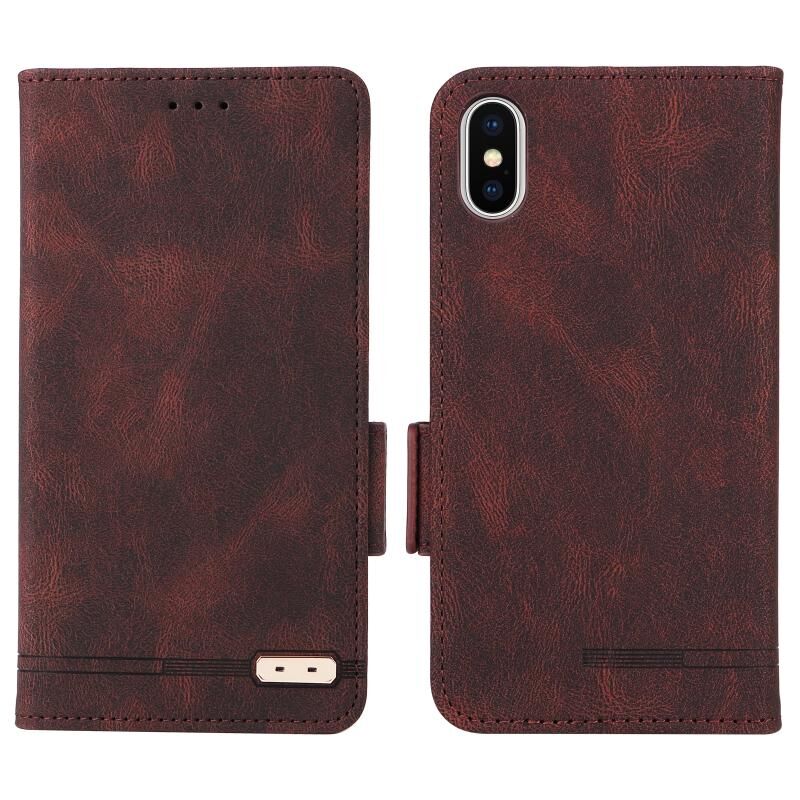 Θήκη τηλεφώνου από δέρμα με μαγνητικό κούμπωμα για iPhone X / XS (Καφέ)