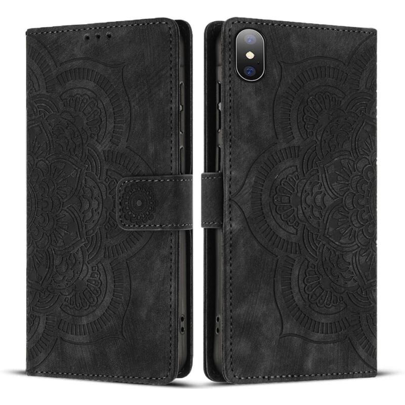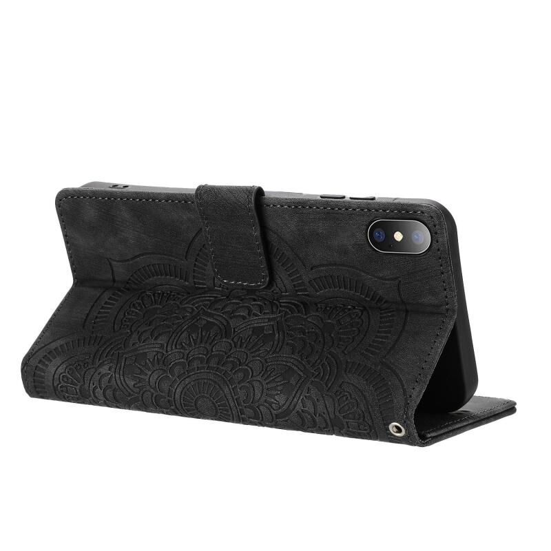 For iPhone X / XS Mandala Embossed Retro Frosted Leather Phone Case(Black)