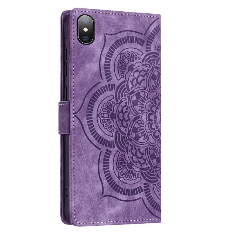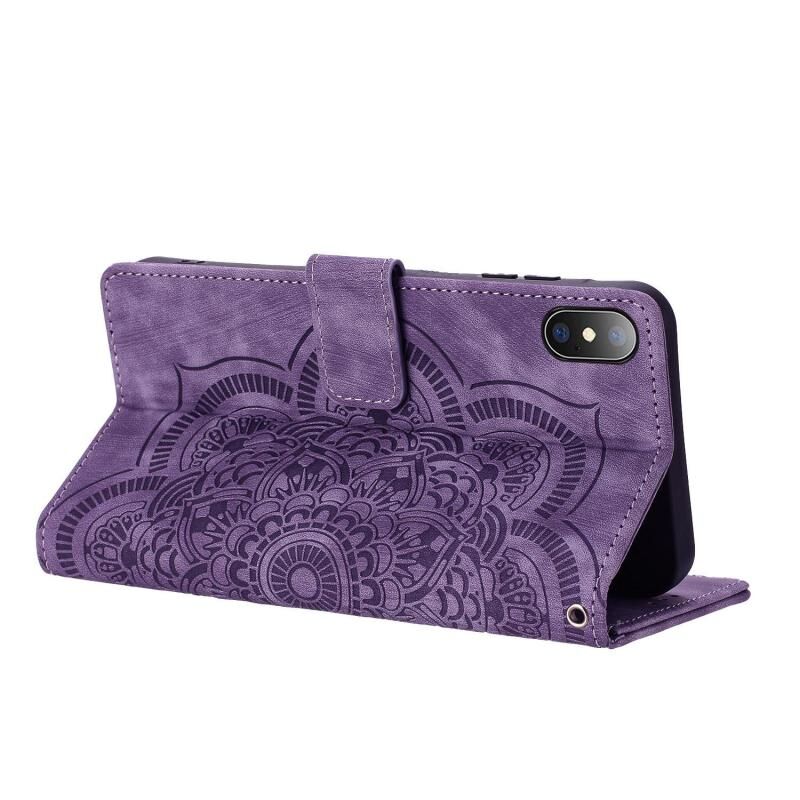 For iPhone X / XS Mandala Embossed Retro Frosted Leather Phone Case(Purple)