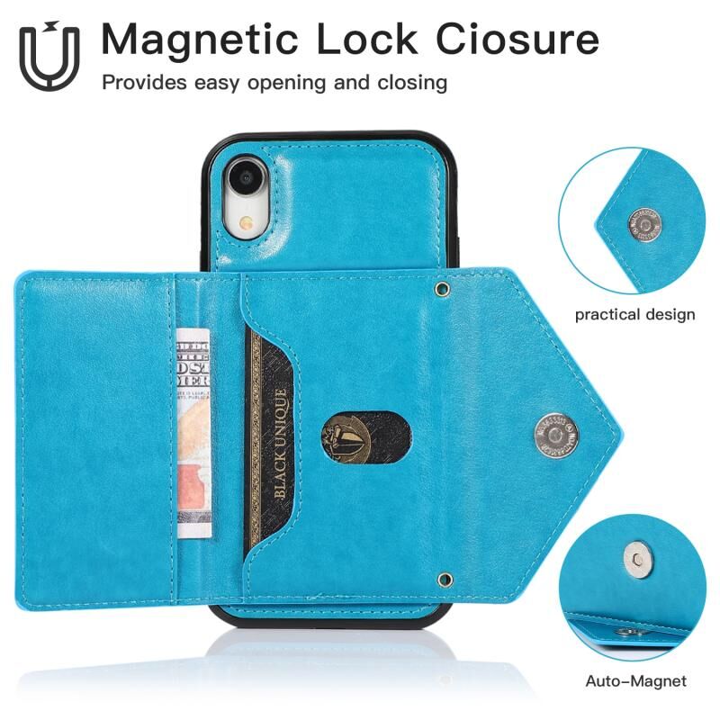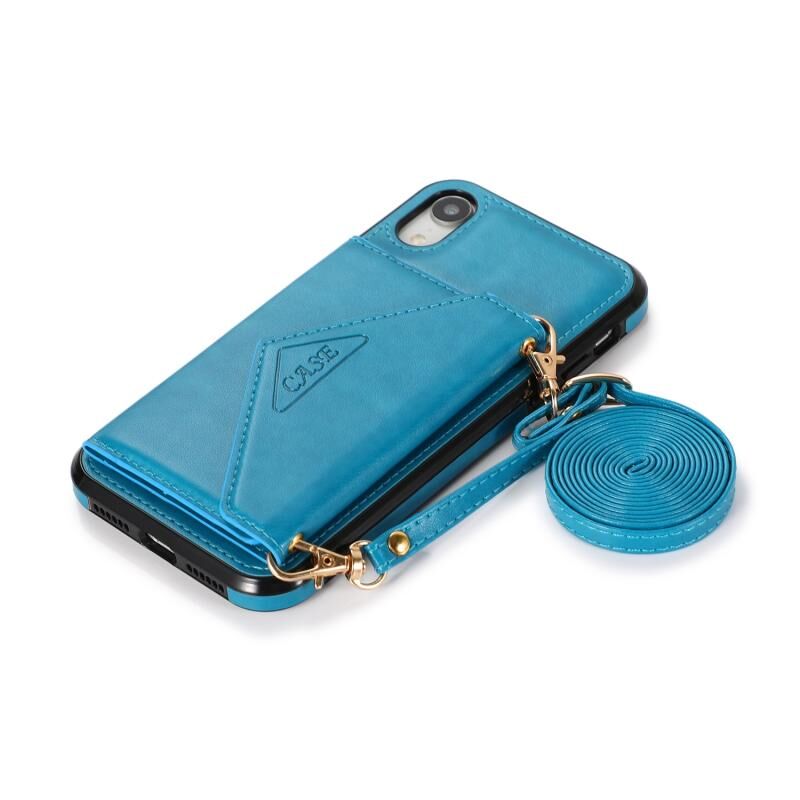 Για iPhone X / XS Πολυλειτουργική Τσάντα Κάρτας Χιαστί, Θήκη Πίσω Καπακιού TPU+PU με Θήκη & Υποδοχή Κάρτας & Πορτοφόλι (Μπλε)