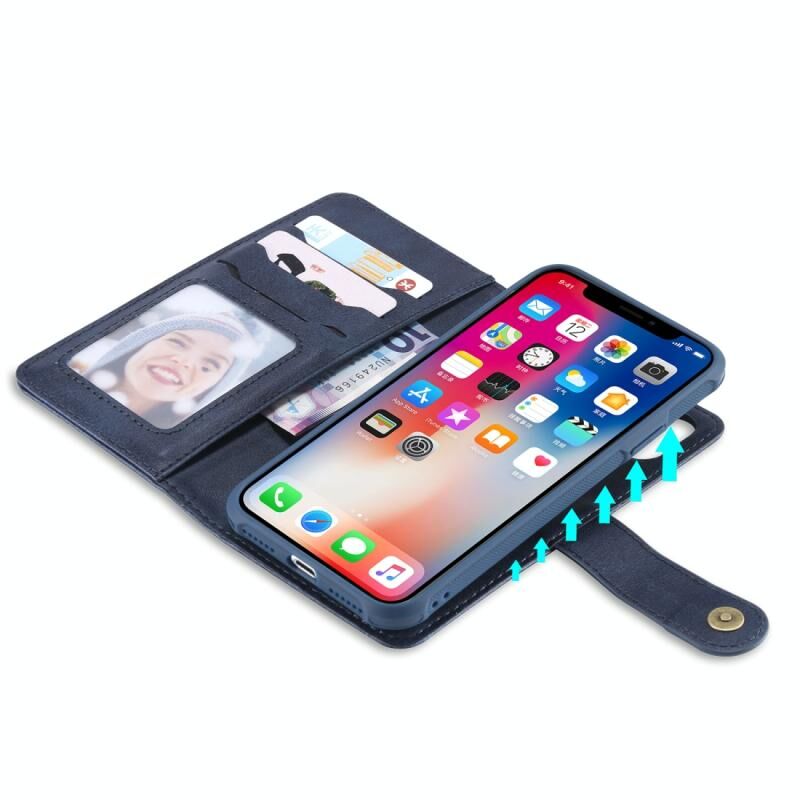Θήκη δέρματος οριζόντιας αναδίπλωσης με μαγνητικό κούμπωμα, αποσπώμενη, πολυλειτουργική για iPhone X / XS με θήκες για κάρτες, βάση στήριξης, πορτοφόλι & κορνίζα φωτογραφιών (Μπλε)