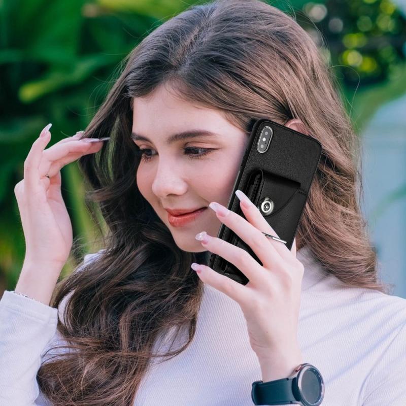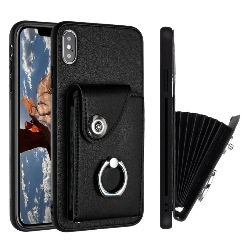 Θήκη τηλεφώνου για iPhone X / XS με κάρτες, δαχτυλίδι και βάση στήριξης (Μαύρο)