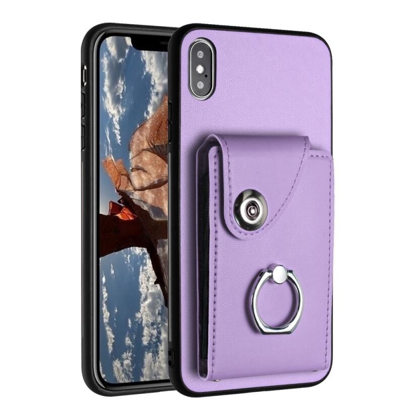 Θήκη τηλεφώνου για iPhone X / XS με κάρτα οργάνωσης, δακτύλιο και βάση στήριξης (Μωβ)