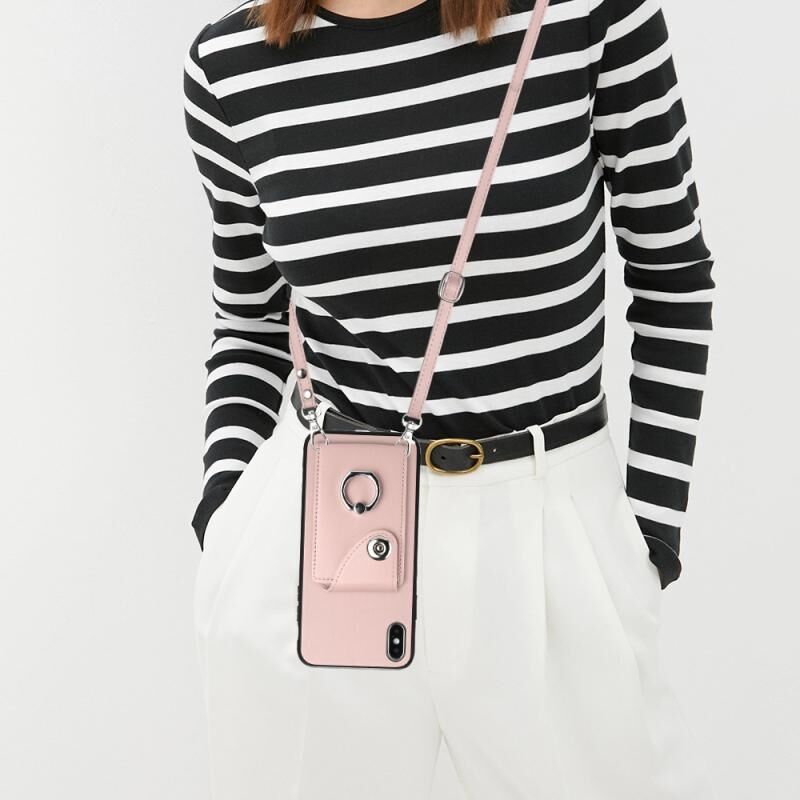 Θήκη τηλεφώνου με δακτύλιο συγκράτησης και μακρύ λουρί για iPhone X / XS (Πράσινο)