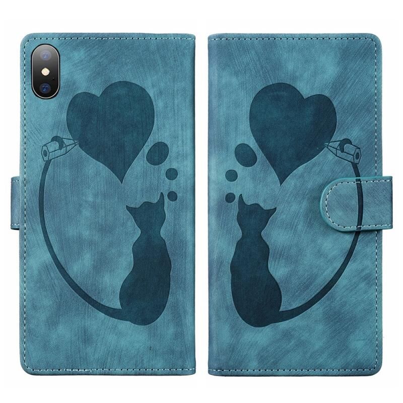 Θήκη τηλεφώνου από δέρμα με ανάγλυφο σχέδιο καρδιάς και γάτας για iPhone X / XS (Πορτοκαλί)