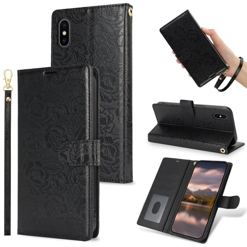 Θήκη τηλεφώνου από δέρμα με σχέδιο από παιώνιες για iPhone X / XS (Μαύρο)