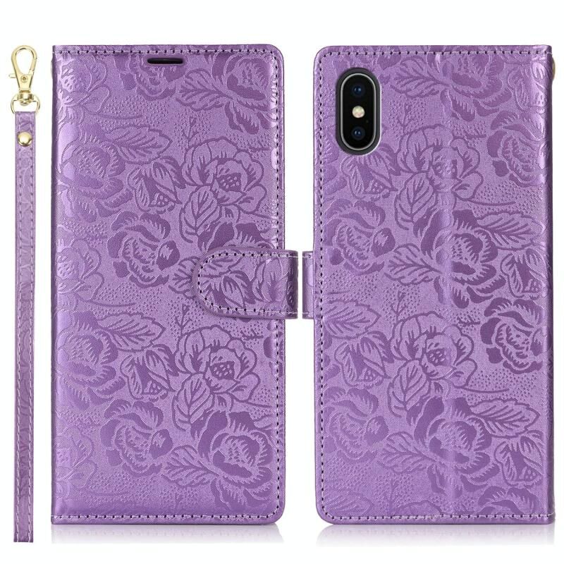 Θήκη τηλεφώνου από δέρμα με σχέδιο από παιώνιες για iPhone X / XS (Μαύρο)
