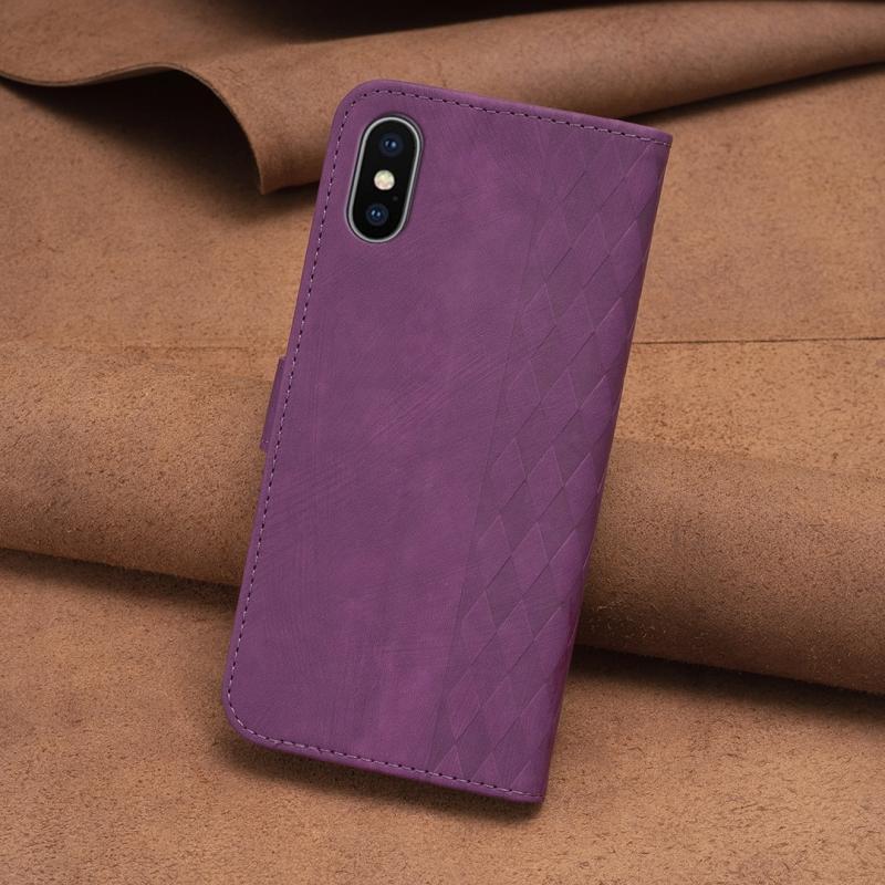 For iPhone X / XS Plaid Embossed Leather Phone Case(Purple)