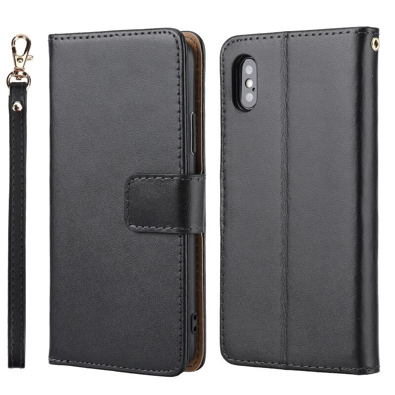 Θήκη τηλεφώνου από δέρμα αγελάδας με απλή ύφανση για iPhone X / XS (Μαύρο)