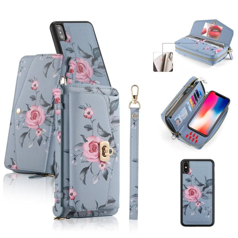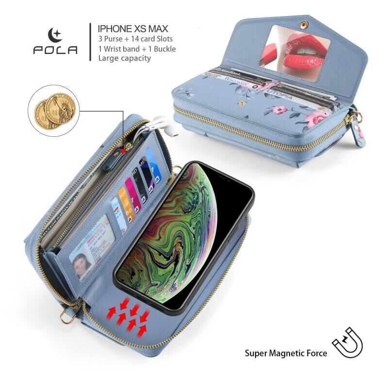 Θήκη τηλεφώνου από δέρμα, πολυλειτουργική, με φερμουάρ και λουρί για iPhone X / XS POLA (Μαύρο)