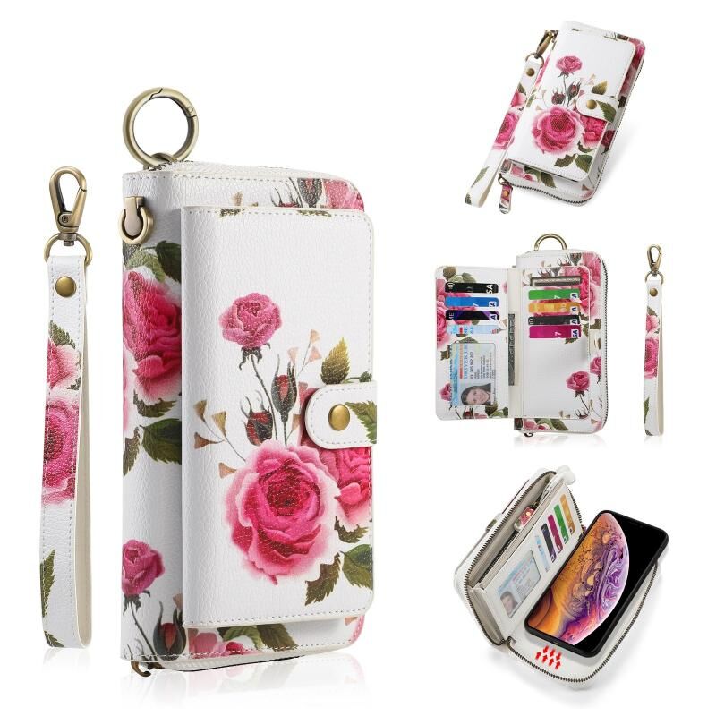 Θήκη τηλεφώνου από δέρμα με φερμουάρ, πολυλειτουργική, για iPhone X / XS POLA Flower (Μπεζ)