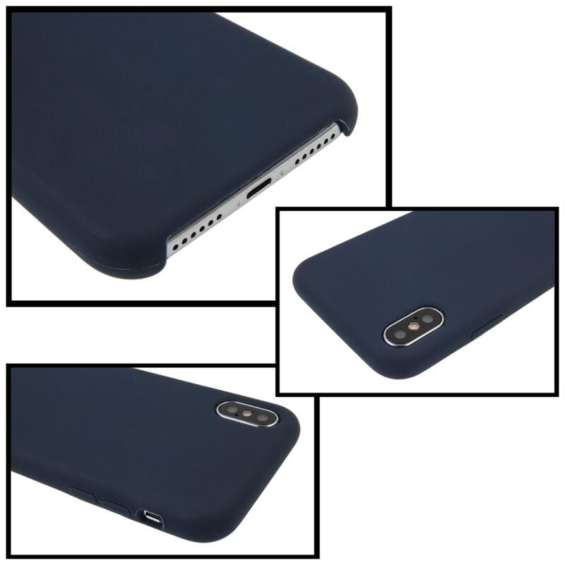 Θήκη προστασίας πλάτης για iPhone X / XS, υγρή σιλικόνη καθαρού χρώματος + PC ανθεκτική στην πτώση (Σκούρο Μπλε)