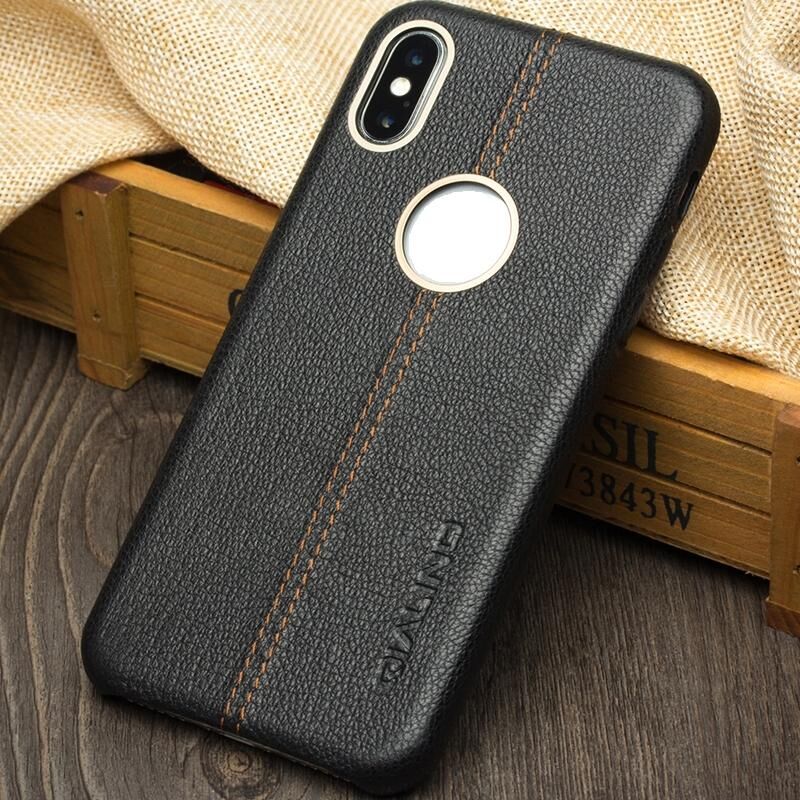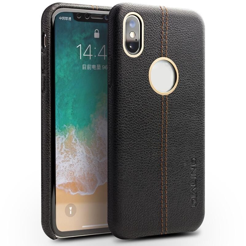 Θήκη προστασίας QIALINO από γνήσιο δέρμα αγελάδας με υφή δέρματος ελαφιού για iPhone X / XS (Μαύρο) (QIALINO)