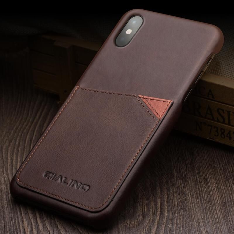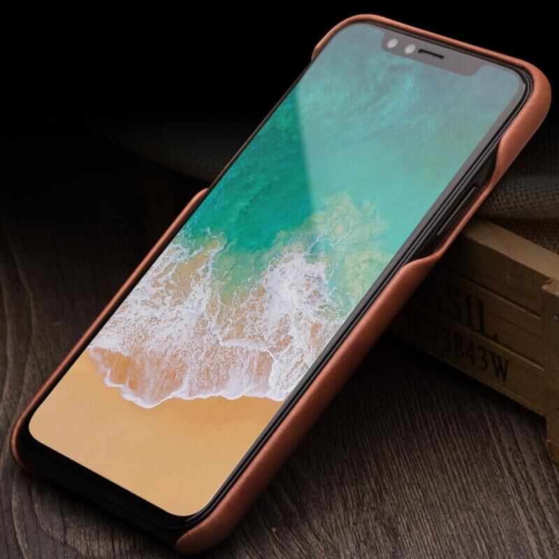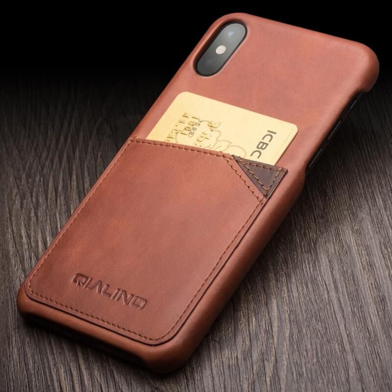 Θήκη προστασίας QIALINO από δέρμα αγελάδας ανθεκτική στις κρούσεις για iPhone X / XS με υποδοχή για κάρτες (Σκούρο Καφέ) (QIALINO)
