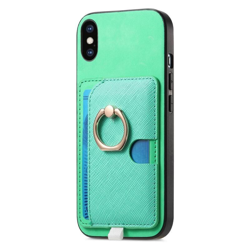 Θήκη τηλεφώνου MagSafe για iPhone X / XS, Ρετρό Δερμάτινη με Ενσωματωμένη Κάρτα και Δαχτυλίδι (Πράσινη)