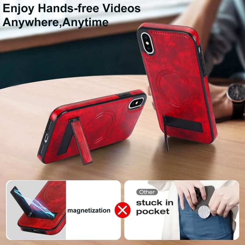 Θήκη τηλεφώνου MagSafe από δέρμα retro με αόρατο στήριγμα για iPhone X / XS (Λευκό)