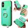 Θήκη τηλεφώνου για iPhone X / XS με μαγνητική βάση Retro, δερμάτινο δαχτυλίδι στήριξης και θήκη καρτών (Κίτρινο)