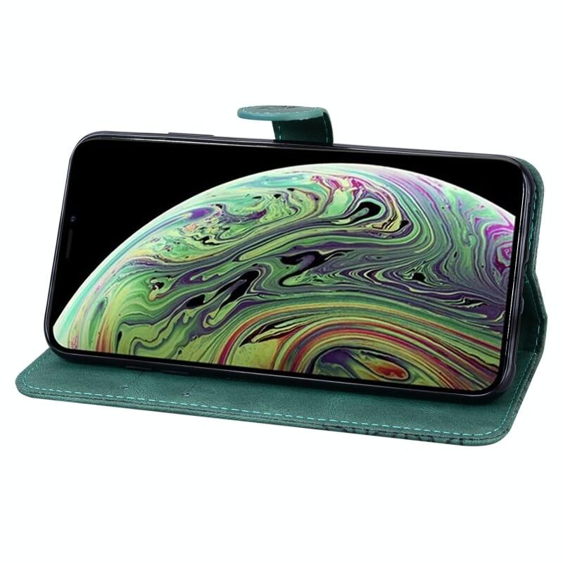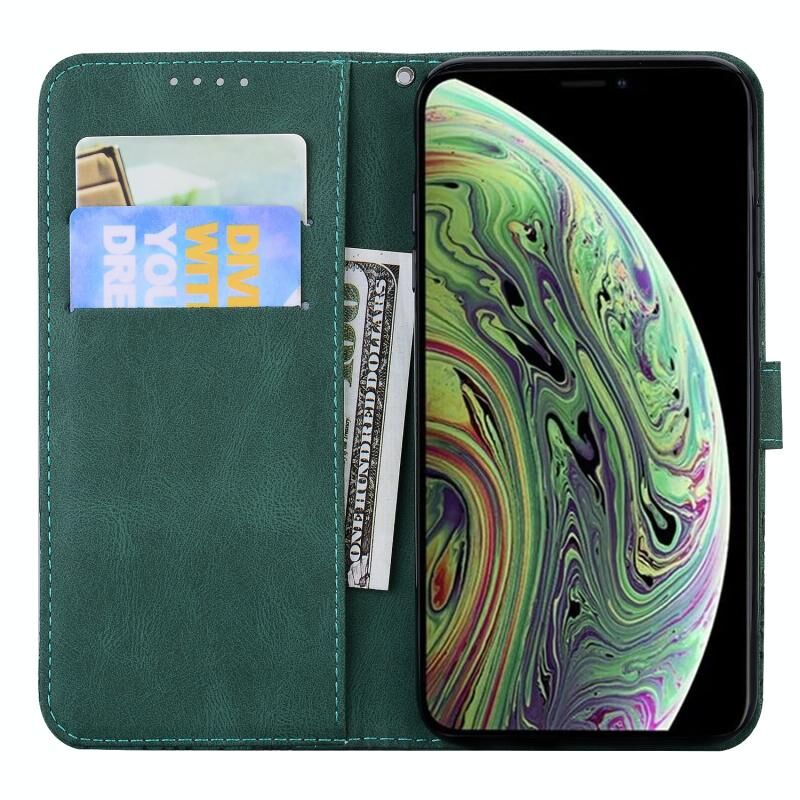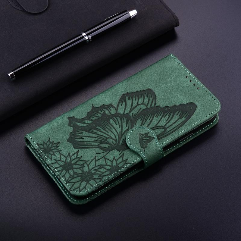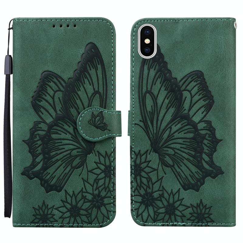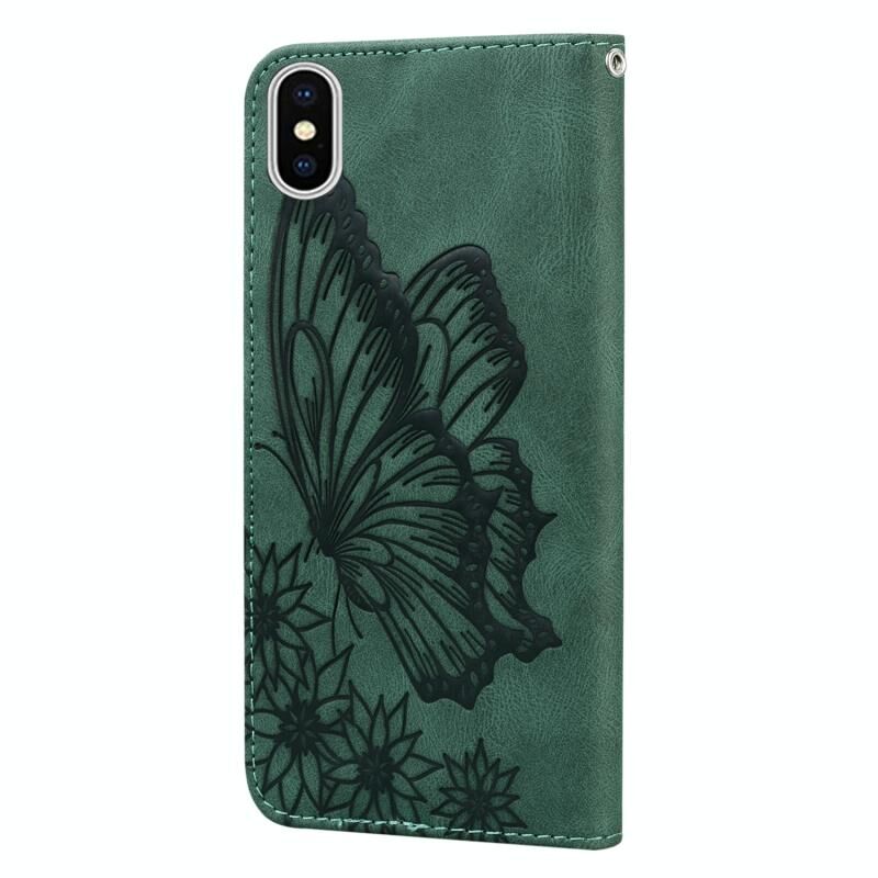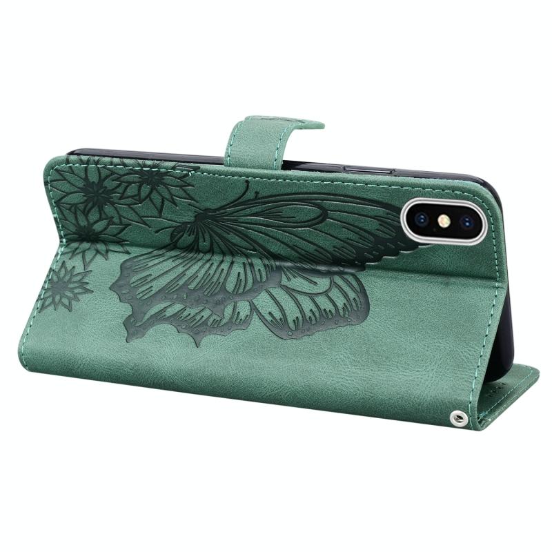 For iPhone X / XS Retro Skin Feel Butterflies Embossing Horizontal Flip Leather Case with Holder & Card Slots & Wallet(Green)